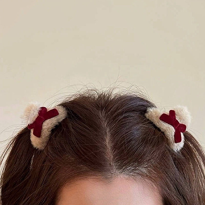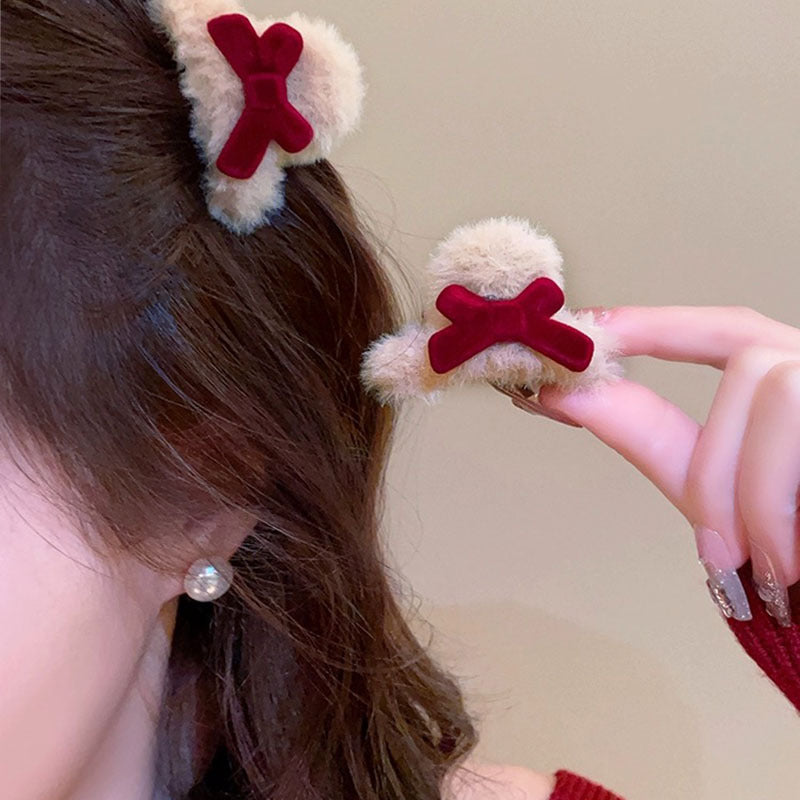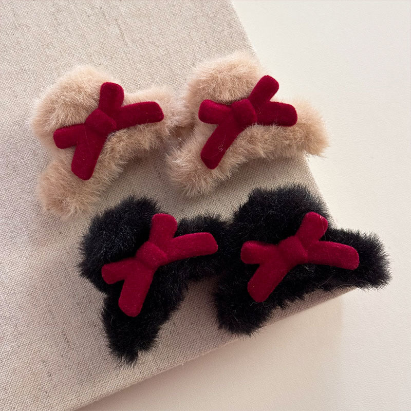 Mini Plush Bow Hair Clip |Hair Claw |Hair Barrette 2pcs A112