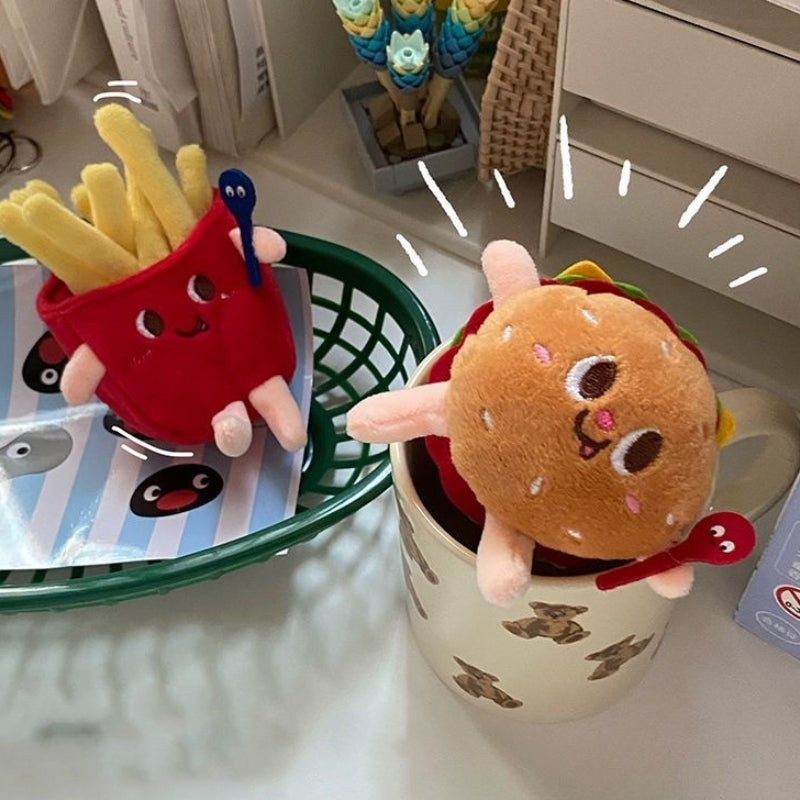 Hamburger Chips Hot Dogs Design Bag KeyChain |Pendant Plush Schoolbag Hanging Decoration Gifts K22