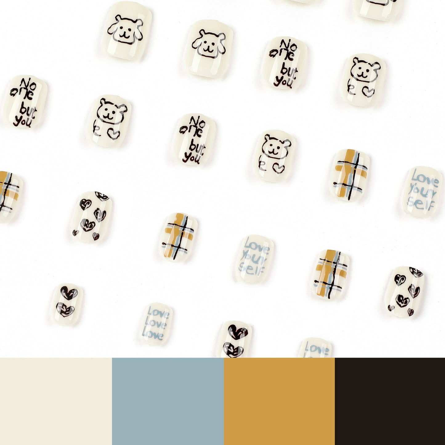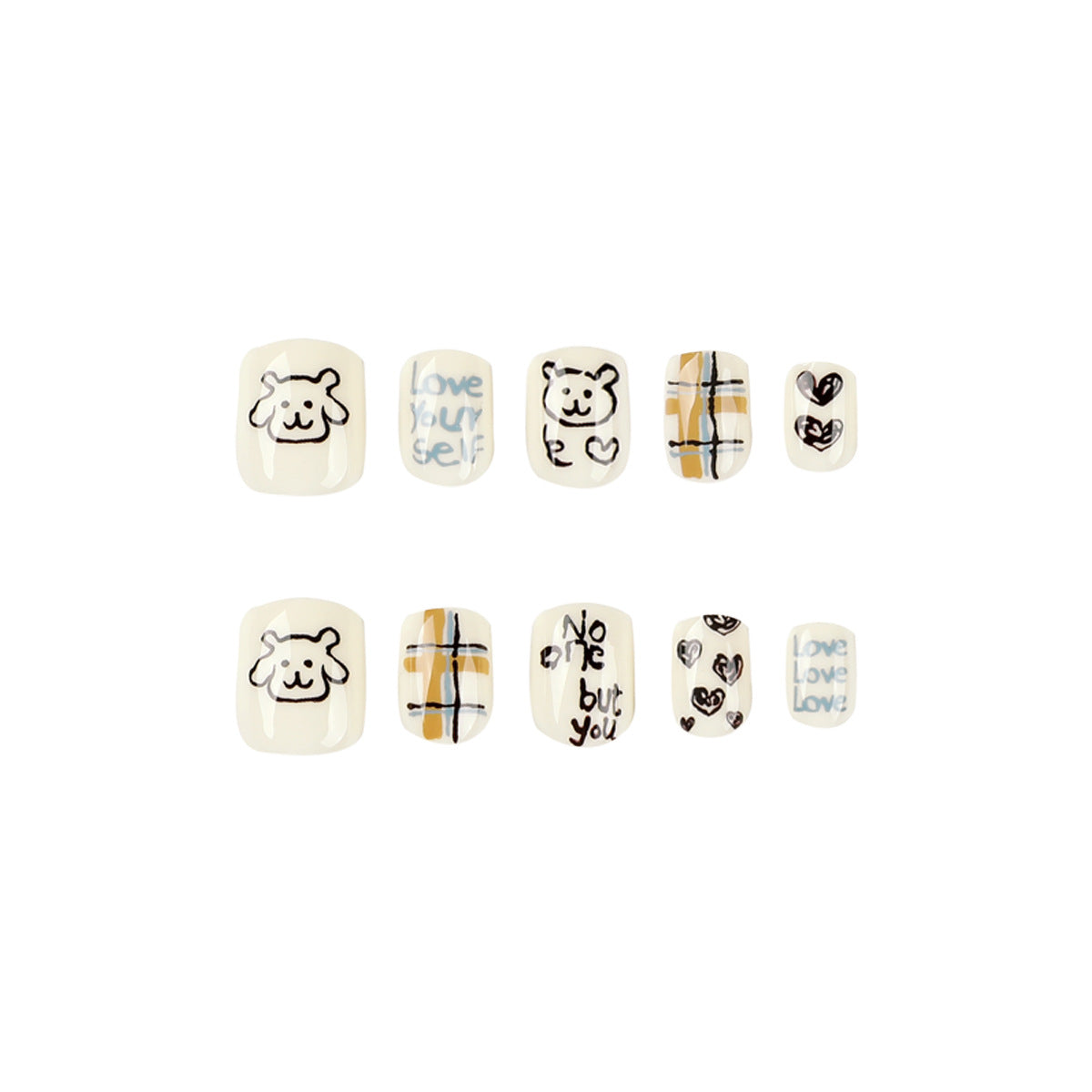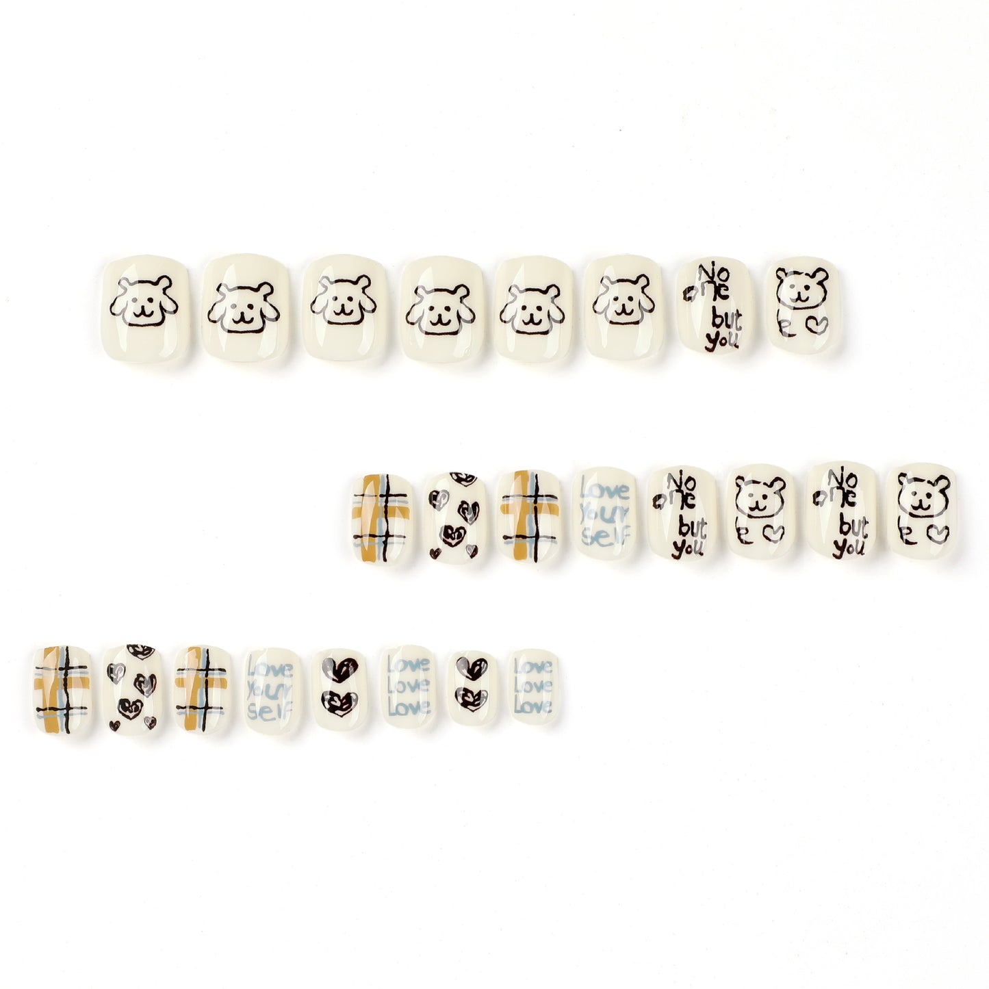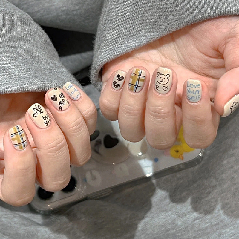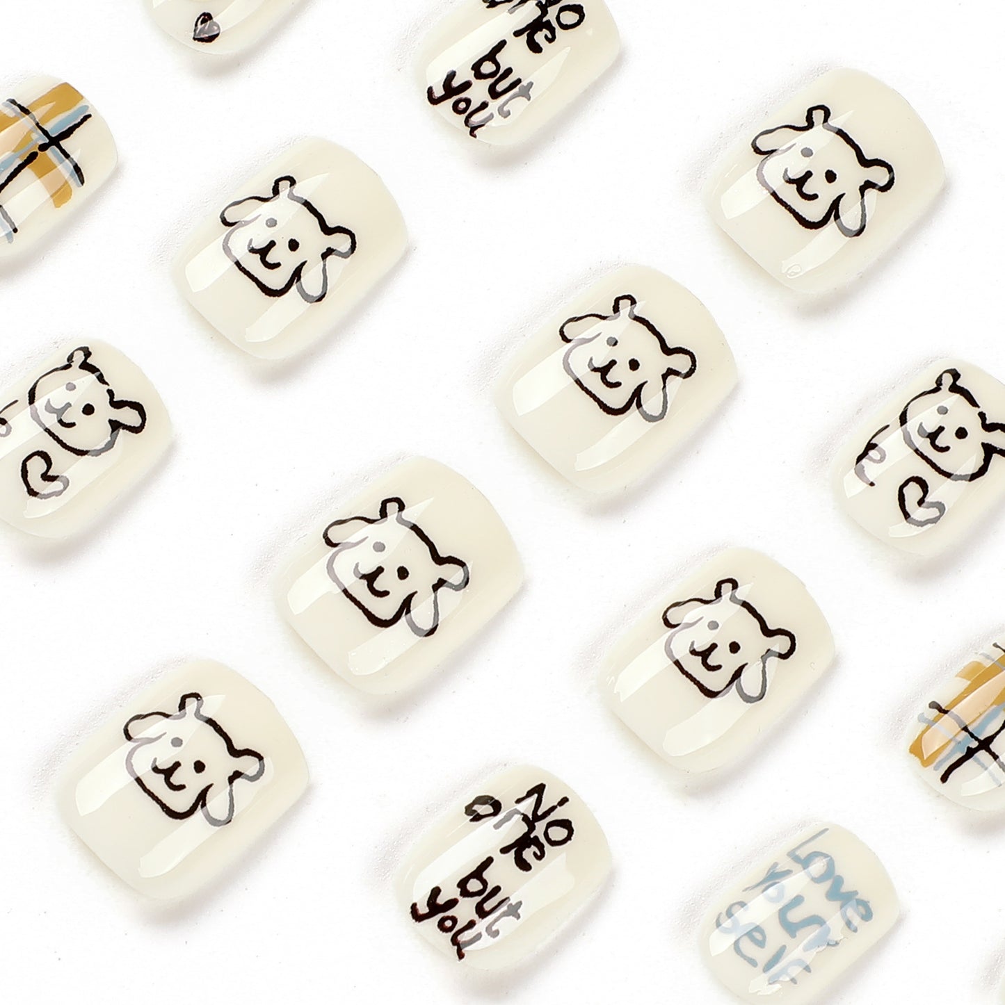 Bear Doodles| Short Squoval Manicure | Press On Nails N771