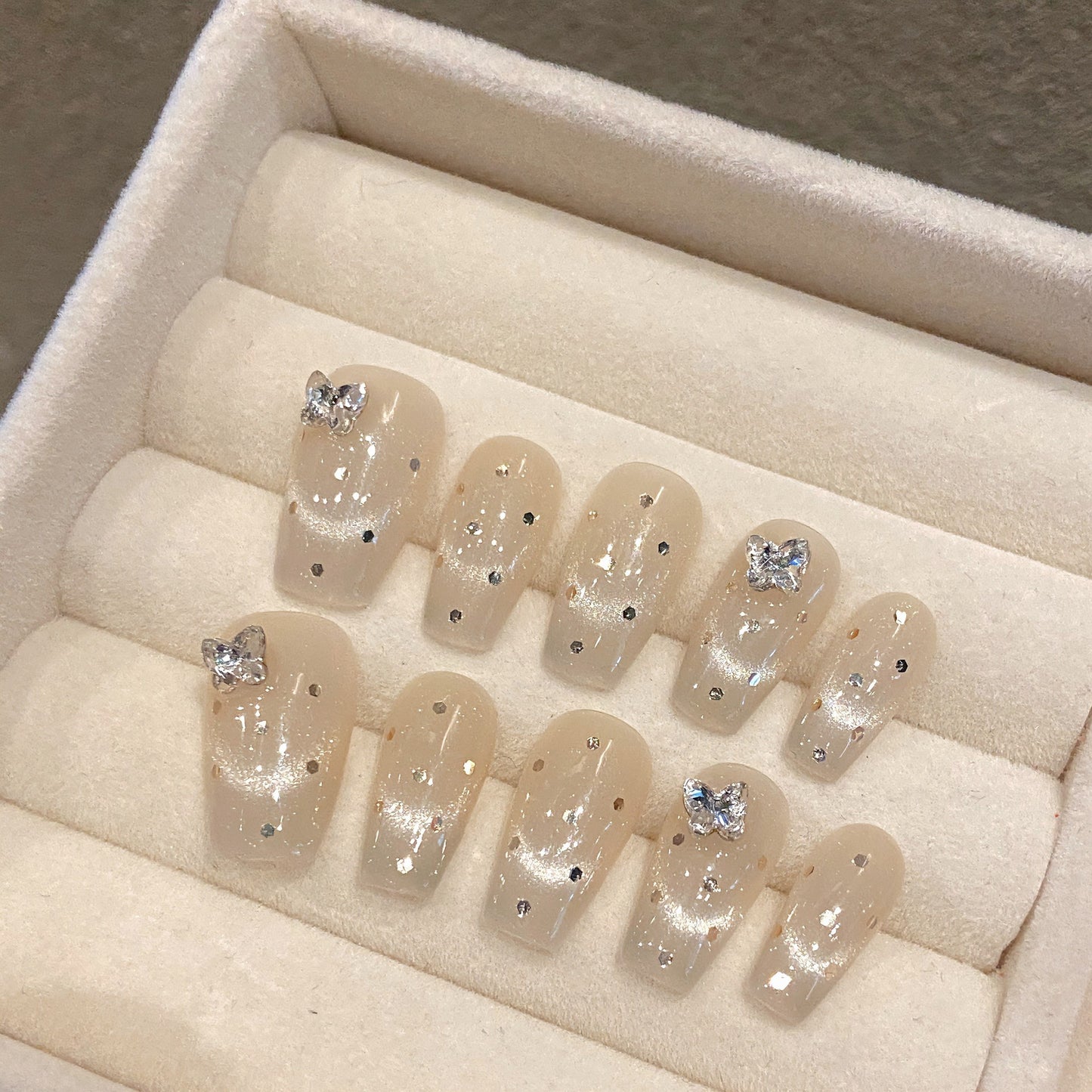 Dainty Butterfly| Long Coffin Manicure | Handmade Press on Nails H331