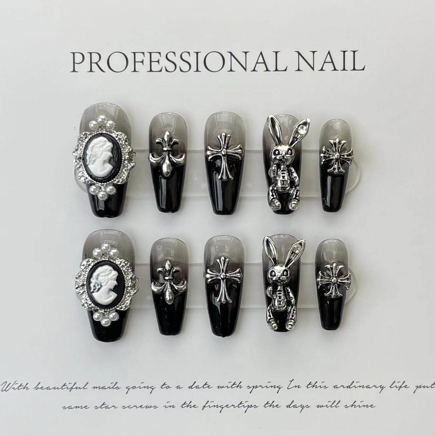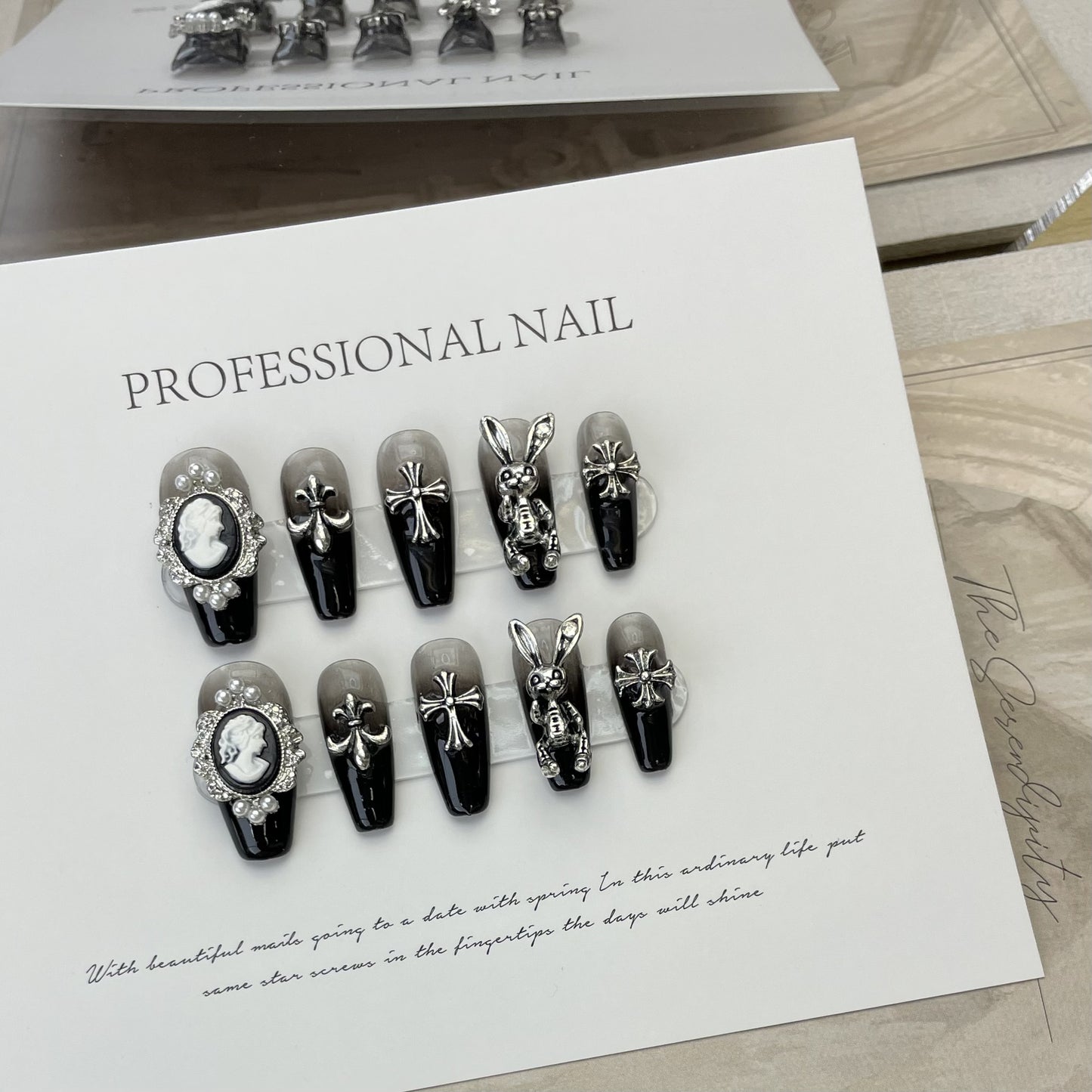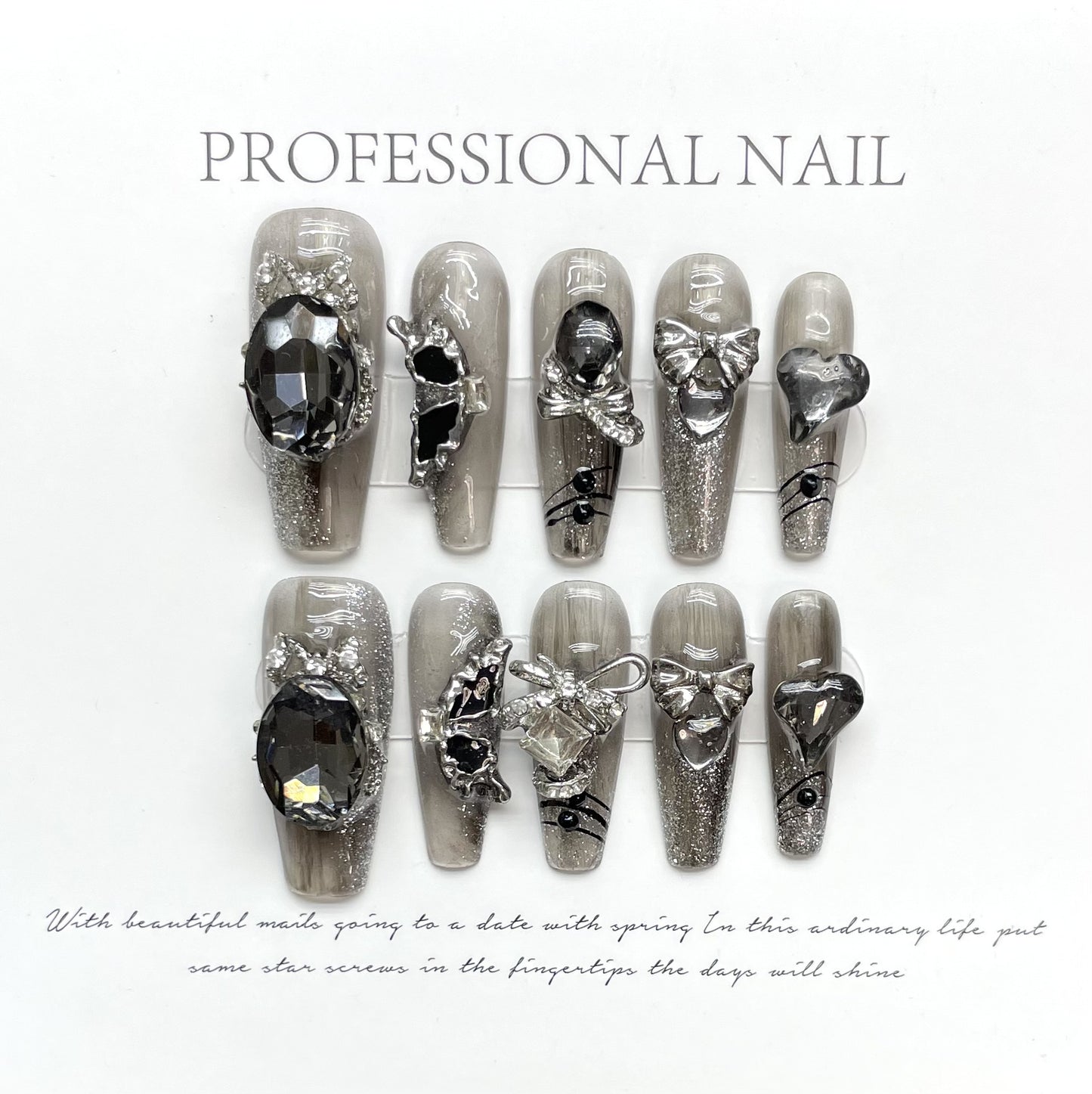Nightfall Butterfly| Long Coffin Manicure| Handmade Press on Nails H287
