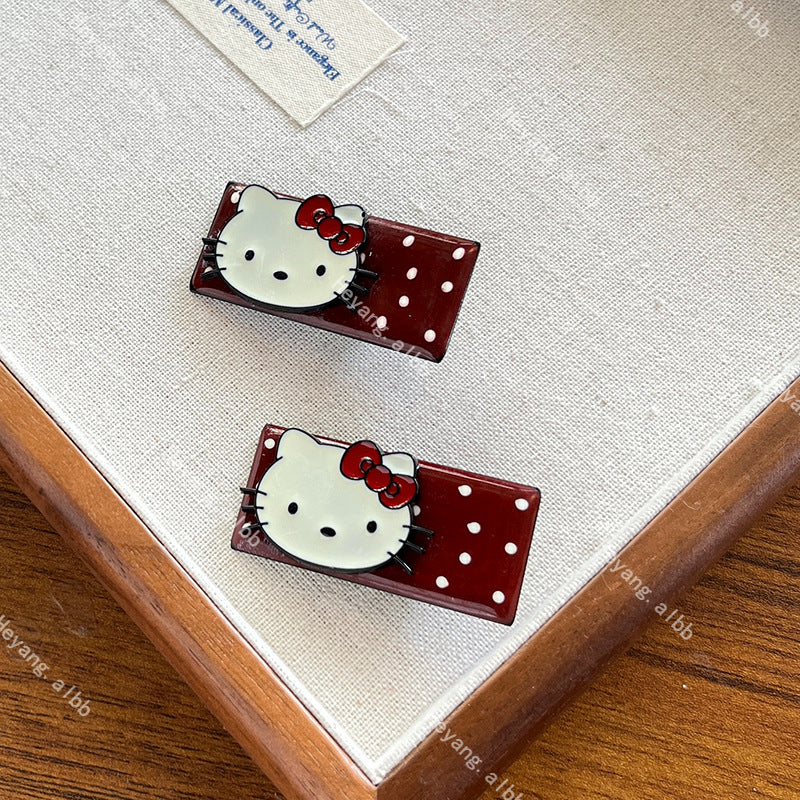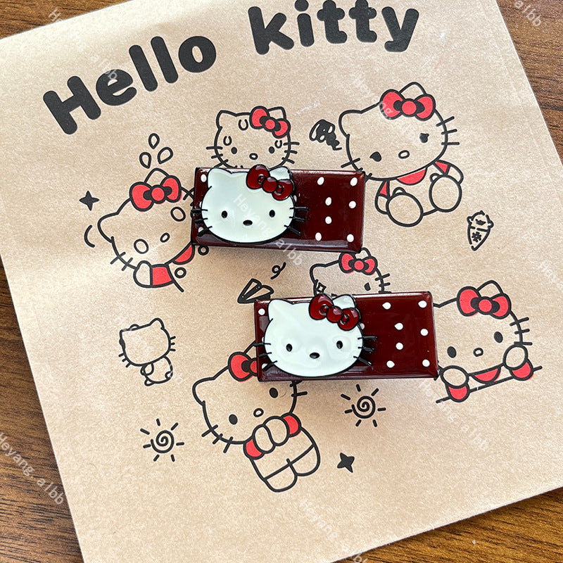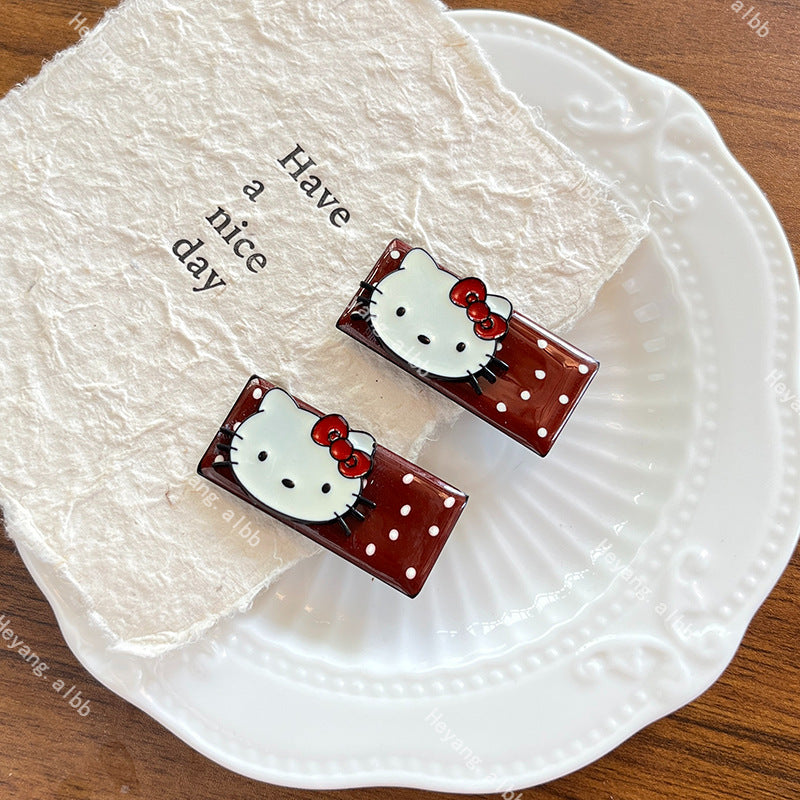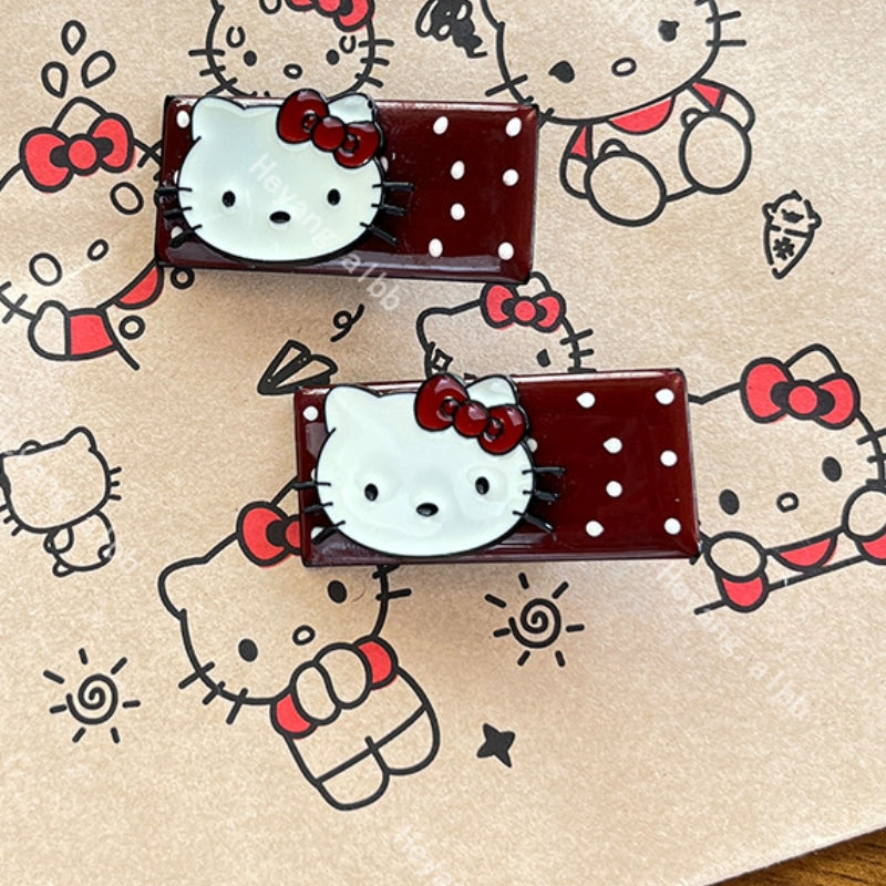 Polka dots Kitty Hair Clip |Hair Snap Clip |Hair Barrette |Duckbill Hairpin 2pcs A377